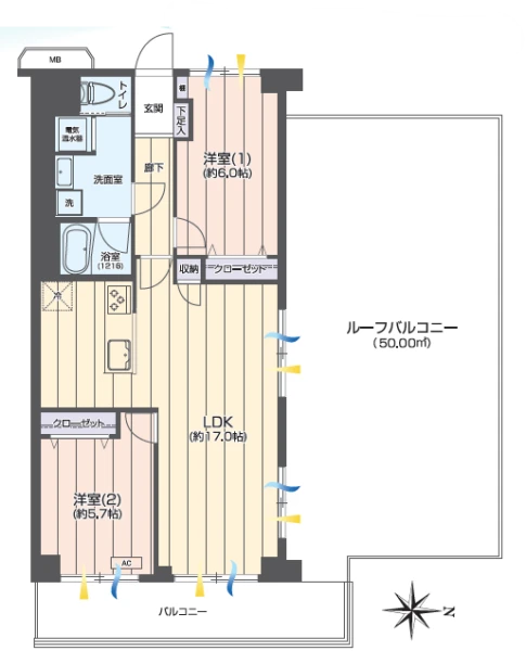 | 間取り | 2LDK | 間取り向き | (角部屋) |