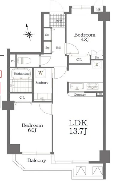 | 専有面積 | 54.83㎡(壁芯) | 建物構造 | 鉄筋コンクリート(RC) |