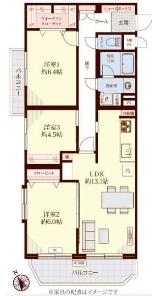 | バルコニー面積 | 9.63㎡ | バルコニー向き | 南西 |