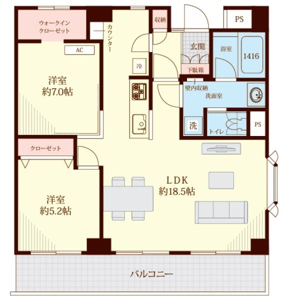 | 間取り | 2LDK | 間取り向き | (角部屋) |
