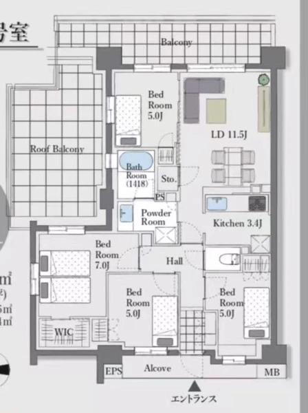 | 間取り | 4LDK | 間取り向き | (角部屋) |
