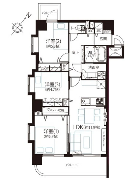 | 間取り | 3LDK | 間取り向き | (角部屋) |