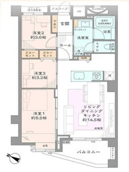 | バルコニー面積 | 7.25㎡ | バルコニー向き | 南西 |