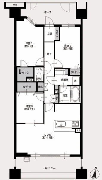 | バルコニー面積 | 12㎡ | バルコニー向き | 南 |