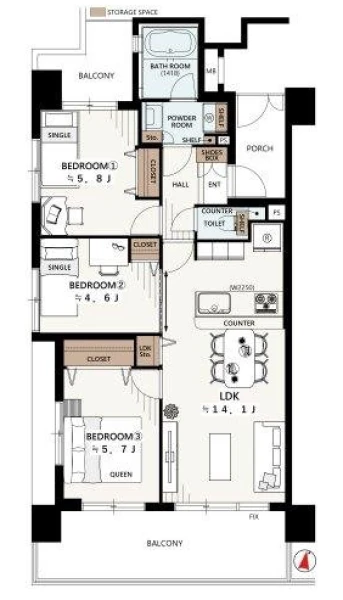 | 専有面積 | 66.09㎡(壁芯) | 建物構造 | 鉄筋コンクリート(RC) |