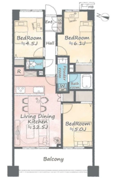 | 専有面積 | 60.87㎡(壁芯) | 建物構造 | 鉄筋コンクリート(RC) |