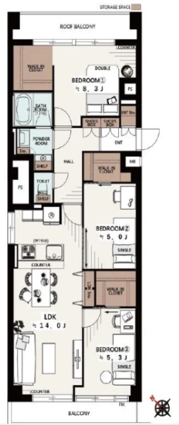 | 専有面積 | 77㎡(壁芯) | 建物構造 | 鉄筋コンクリート(RC) |