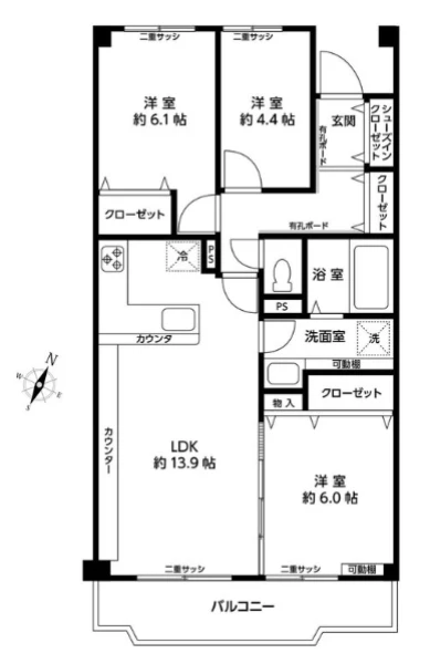 | バルコニー面積 | 6.92㎡ | バルコニー向き | 南東 |