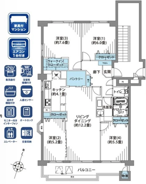 | 専有面積 | 90㎡(壁芯) | 建物構造 | 鉄骨鉄筋コンクリート(SRC) |