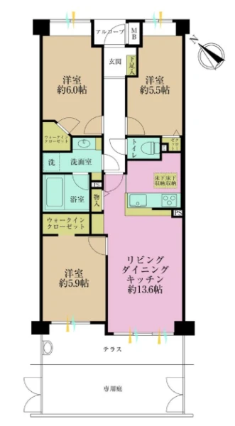 | 専有面積 | 68.63㎡(壁芯) | 建物構造 | 鉄筋コンクリート(RC) |