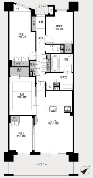 | バルコニー面積 | 12.4㎡ | バルコニー向き | 南東 |
