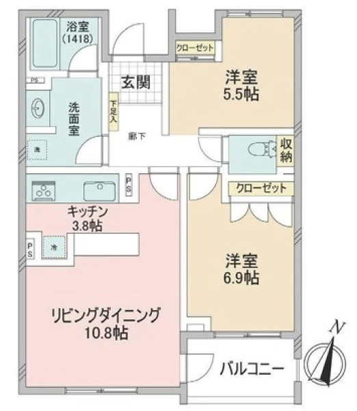 | バルコニー面積 | 5.4㎡ | バルコニー向き | 南 |