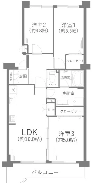 | 専有面積 | 61.48㎡(壁芯) | 建物構造 | 鉄筋コンクリート(RC) |