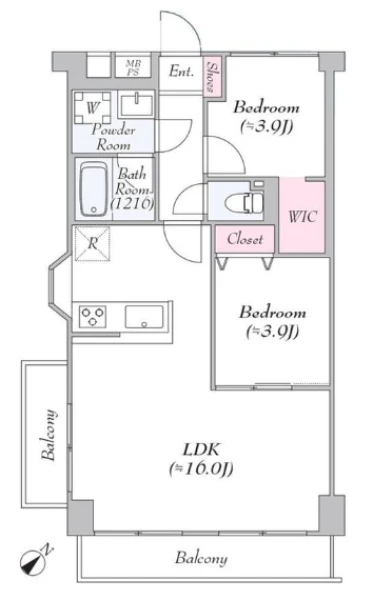 | 間取り | 2LDK | 間取り向き | 南東 (角部屋) |