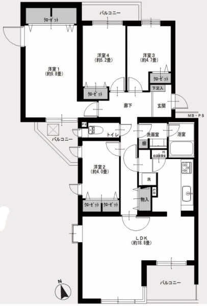 | 間取り | 4LDK | 間取り向き | 南西 (角部屋) |