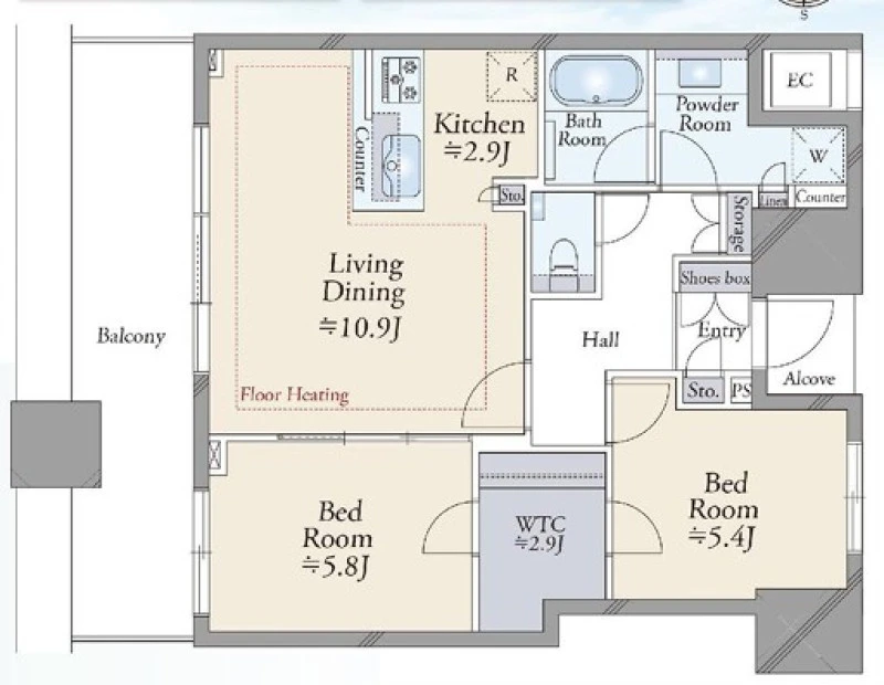 | 専有面積 | 62.42㎡(壁芯) | 建物構造 | 鉄骨鉄筋コンクリート(SRC) |