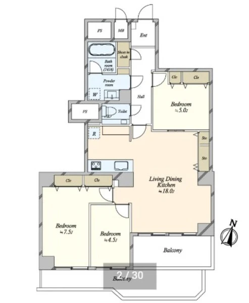 | バルコニー面積 | 17.99㎡ | バルコニー向き | 南 |