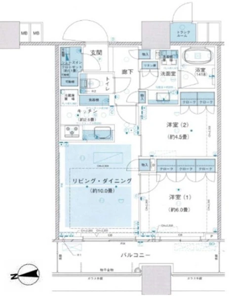 | バルコニー面積 | 9.7㎡ | バルコニー向き | 西 |