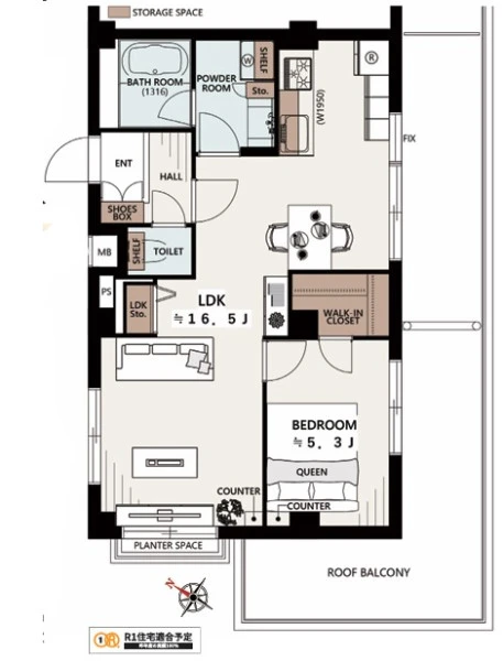 | 間取り | 1LDK | 間取り向き | (角部屋) |