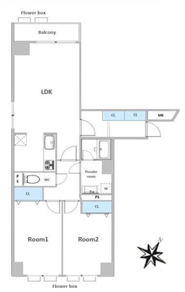 | 間取り | 2LDK | 間取り向き | (角部屋) |