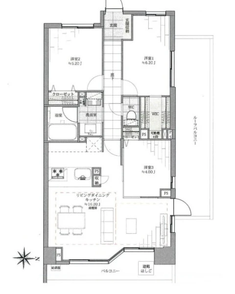 | 間取り | 3LDK | 間取り向き | (角部屋) |
