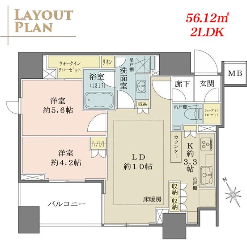 | 専有面積 | 56.12㎡(壁芯) | 建物構造 | 鉄筋コンクリート(RC) |