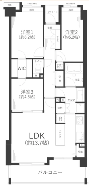 | 専有面積 | 70.81㎡(壁芯) | 建物構造 | 鉄筋コンクリート(RC) |