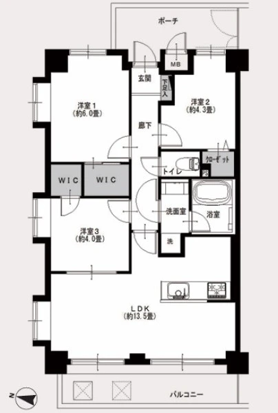 | 間取り | 3LDK | 間取り向き | (角部屋) |