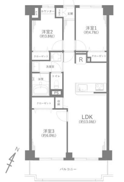 | 間取り | 3LDK | 間取り向き | |