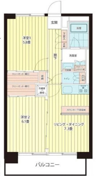 | 間取り | 2DK | 間取り向き | (角部屋) |