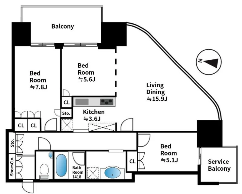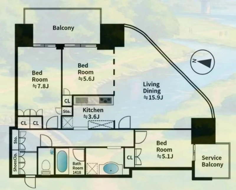 | 専有面積 | 85.41㎡ | 建物構造 | 鉄筋コンクリート(RC) |