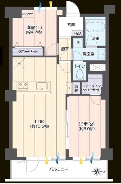 | 間取り | 2LDK | 間取り向き | |