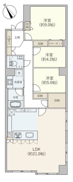 | 間取り | 3LDK | 間取り向き | (角部屋) |