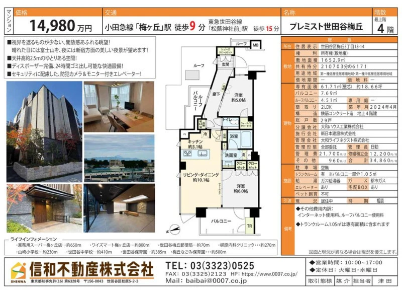 | 所在地 | 東京都世田谷区梅丘3丁目 プレミスト世田谷梅丘 | ||