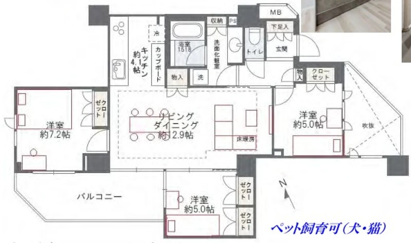 | 間取り | 3LDK | 間取り向き | (角部屋) |