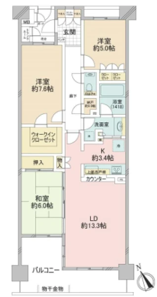 | バルコニー面積 | 14.3㎡ | バルコニー向き | 南西 |