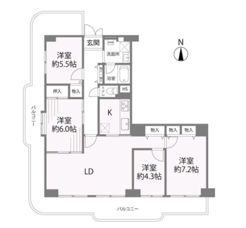 | バルコニー面積 | 7.6㎡ | バルコニー向き | 西 |