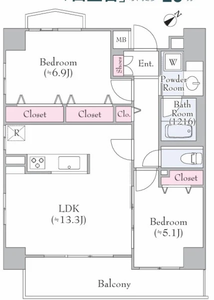 | 専有面積 | 58.85㎡(壁芯) | 建物構造 | 鉄骨鉄筋コンクリート(SRC) |
