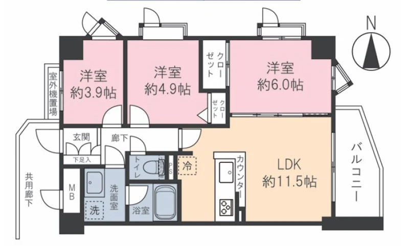 | 間取り | 3LDK | 間取り向き | (角部屋) |