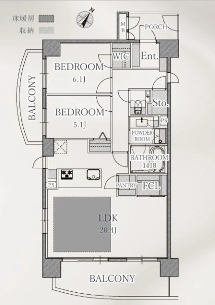 | 専有面積 | 75.9㎡(壁芯) | 建物構造 | 鉄骨鉄筋コンクリート(SRC) |