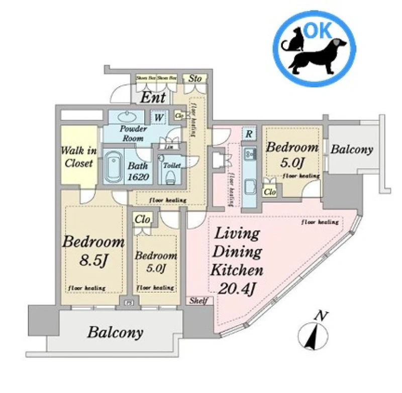 | 設備 | 都市ガス、上水道、下水道、システムキッチン、浄水器、食器洗浄乾燥機、IHクッキングヒーター、ディスポーザー、追焚機能、バス・トイレ別、温水洗浄便座、洗面所、洗面台、室内洗濯機置場、浴室乾燥機、床暖房、CATV、CS、2面バルコニー、インターネット、収納スペース、エレベータ、宅配ボックス、オートロック、モニタ付インターホン | ||