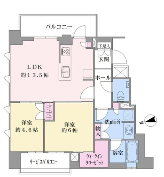 | 間取り | 2LDK | 間取り向き | (角部屋) |