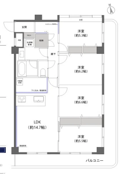 | 間取り | 4LDK | 間取り向き | (角部屋) |