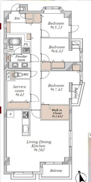 | 間取り | 3LDK+S | 間取り向き | (角部屋) |