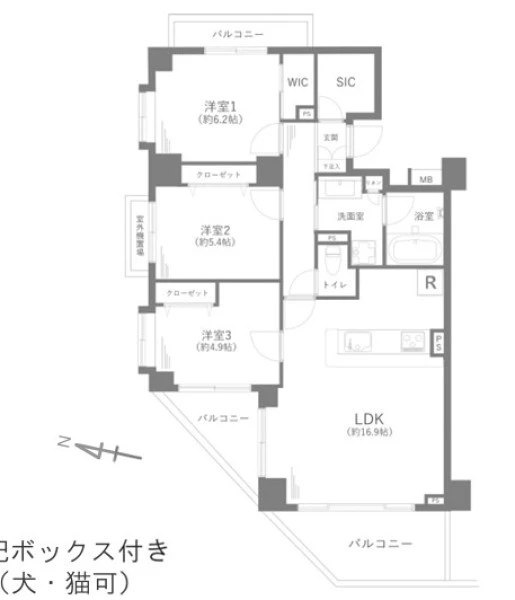| 間取り | 3LDK | 間取り向き | (角部屋) |