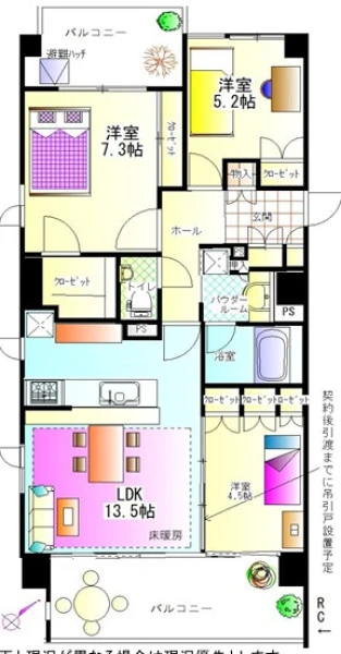 | 専有面積 | 72.21㎡(壁芯) | 建物構造 | 鉄筋コンクリート(RC) |