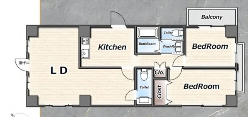 | 間取り | 2LDK | 間取り向き | (角部屋) |