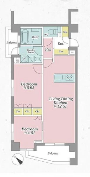 | 間取り | 2LDK | 間取り向き | (角部屋) |