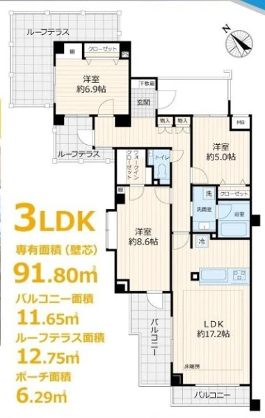 | 専有面積 | 91.8㎡(壁芯) | 建物構造 | 鉄筋コンクリート(RC) |