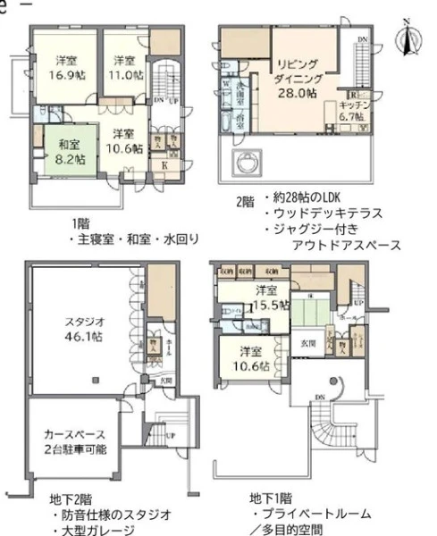 鉄筋コンクリート(RC) 2階建 (地下2階建) |